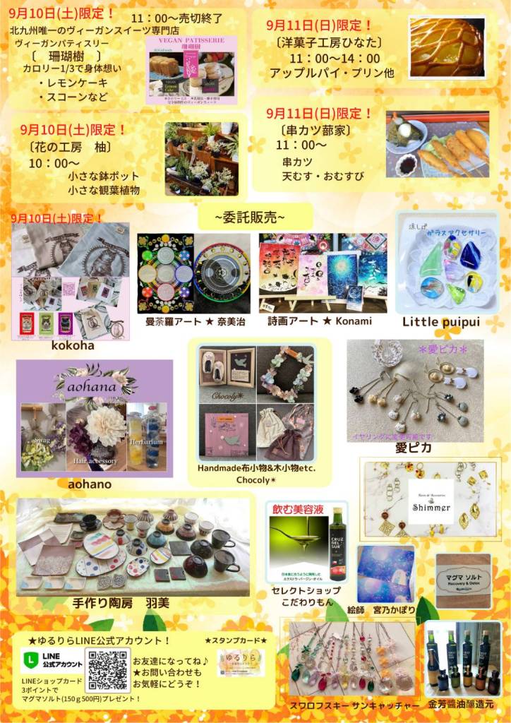 第18回「ゆるりら~至福のひととき~」 今回は出店者6組、委託販売13組です。